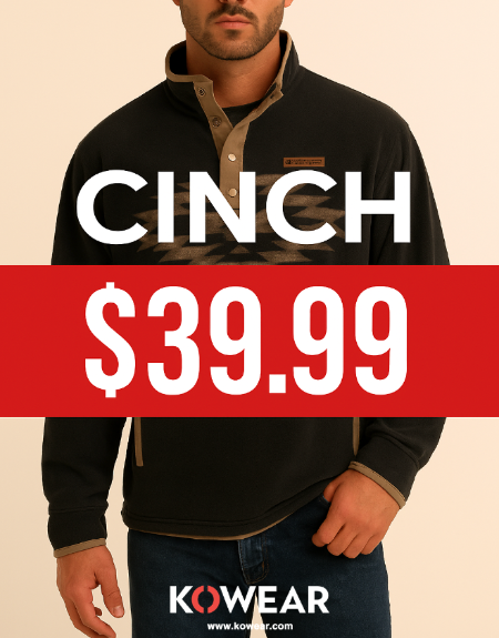 Get all Cinch hoodies for just $39.99 — available in-store and online at KOWEAR.com for a limited time!