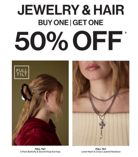 Jewelry & Hair Buy One, Get One 50% Off